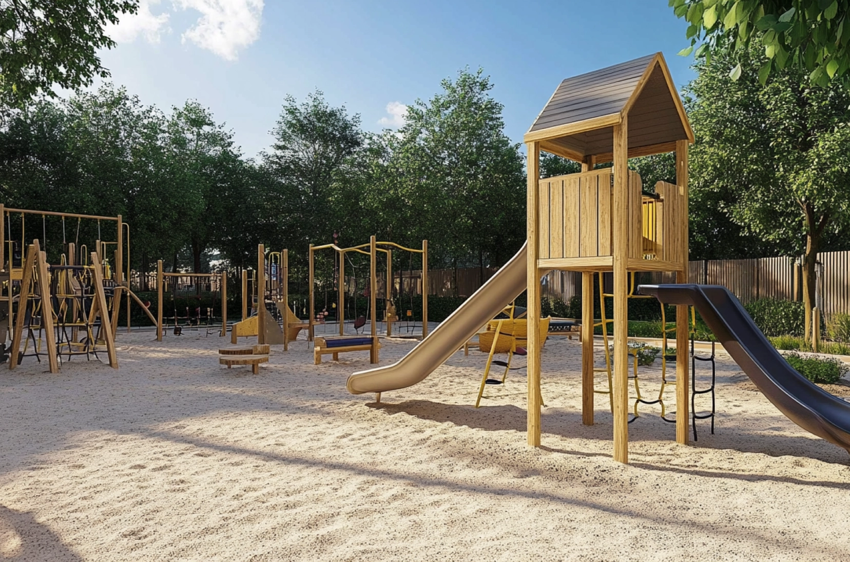 и спортивные площадки.