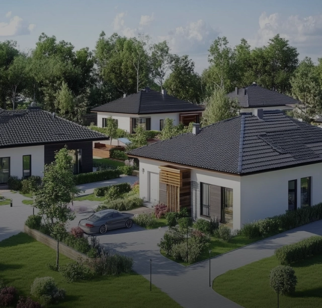 Стиль - поселок предусматривает строительство домов, выполненных в единой стилистике